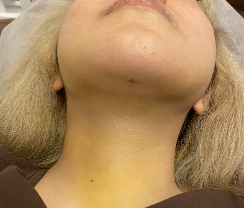 今回は頬顎下の脂肪組織を柔らかくする目的で手術日、前日に頬顎下にインディバ 施術を行っております。