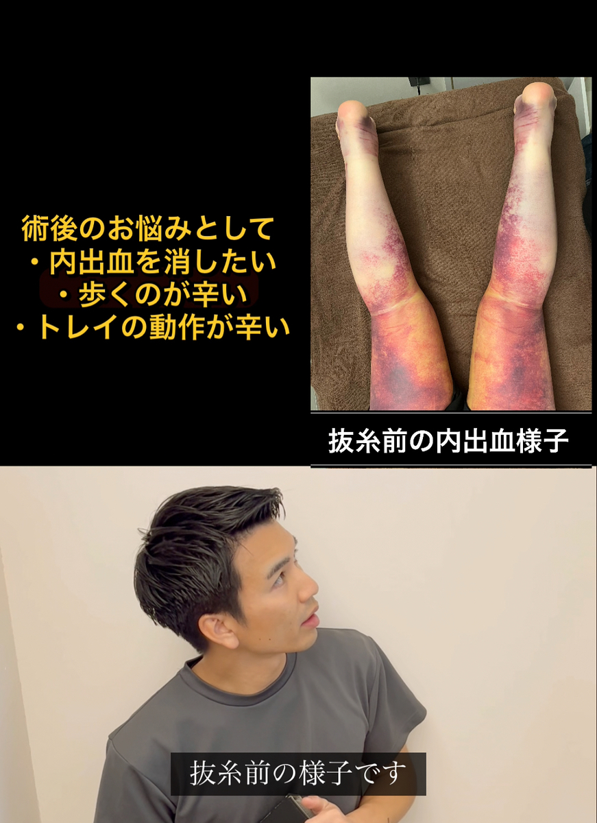 本日は太もも脂肪吸引後の抜糸前と抜糸後のインディバ施術5回行った内出血の様子について投稿したいと思います!